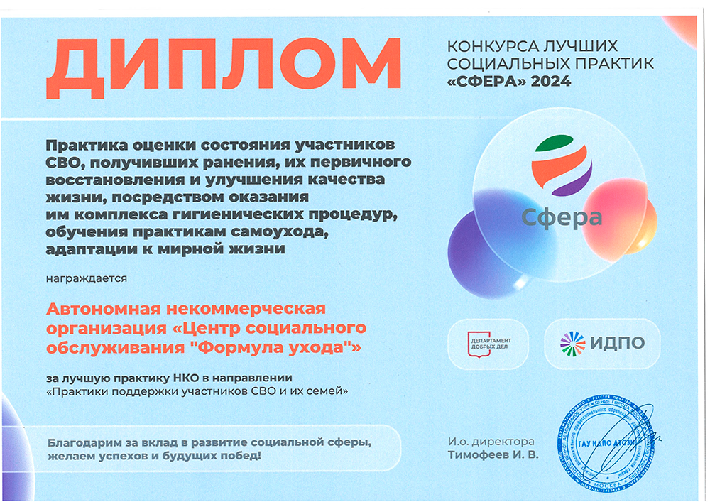 АНО Центр социального обслуживания «Формула ухода» - это социально ориентированная некоммерческая организация, призванная сделать жизнь людей с ограничениями здоровья комфортной, социально-активной и максимально независимой от их физических недугов.